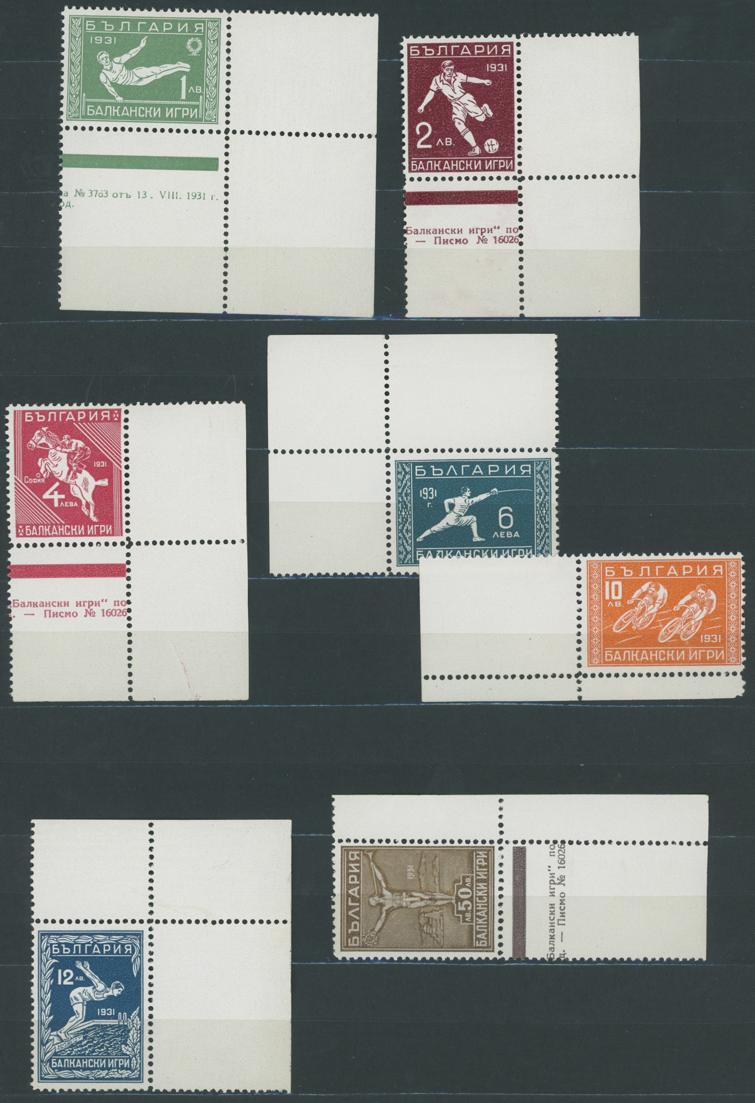 1931, "2. Balkanspiele", je aus der Bogenecke, postfrischer Prachtsatz, Mi. (320.-)