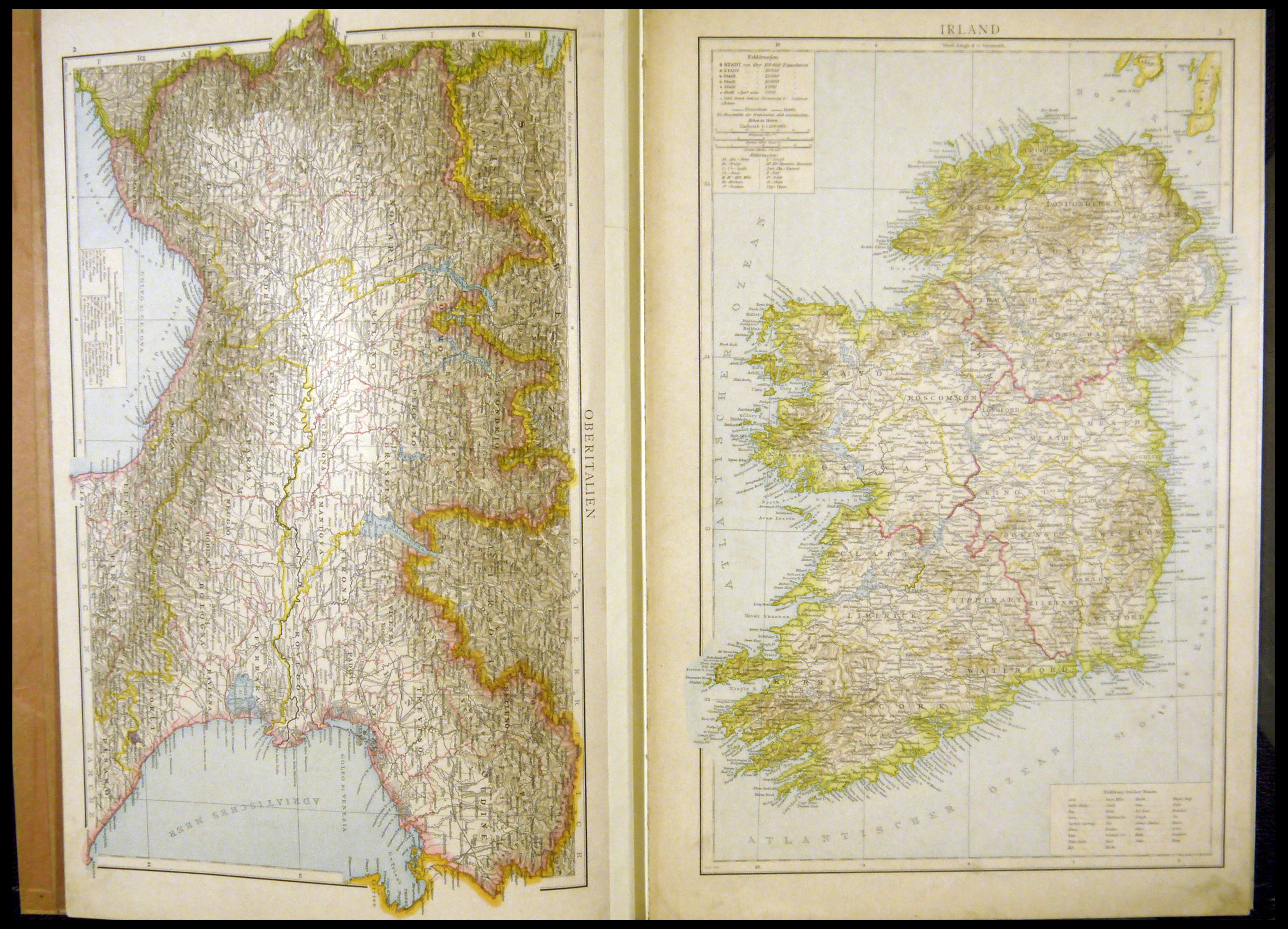 Richard Andrees: supplement to the first issue from Richard Andrees Hand atlas, containing the 33 sides new cards the second edition from 1887, Velhagen & Klasing, Bielefeld Leipzig, cover in half calf, a little stained, otherwise age-appropriate in good conditionRichard Andrees: Supplement zur ersten Auflage von Richard Andrees Handatlas, enthaltend die 33 Seiten neuer Karten der zweiten Auflage von 1887, Velhagen & Klasing, Bielefeld Leipzig, Einband in Halbleder, etwas fleckig, sonst altersgemäß in guter Erhaltung