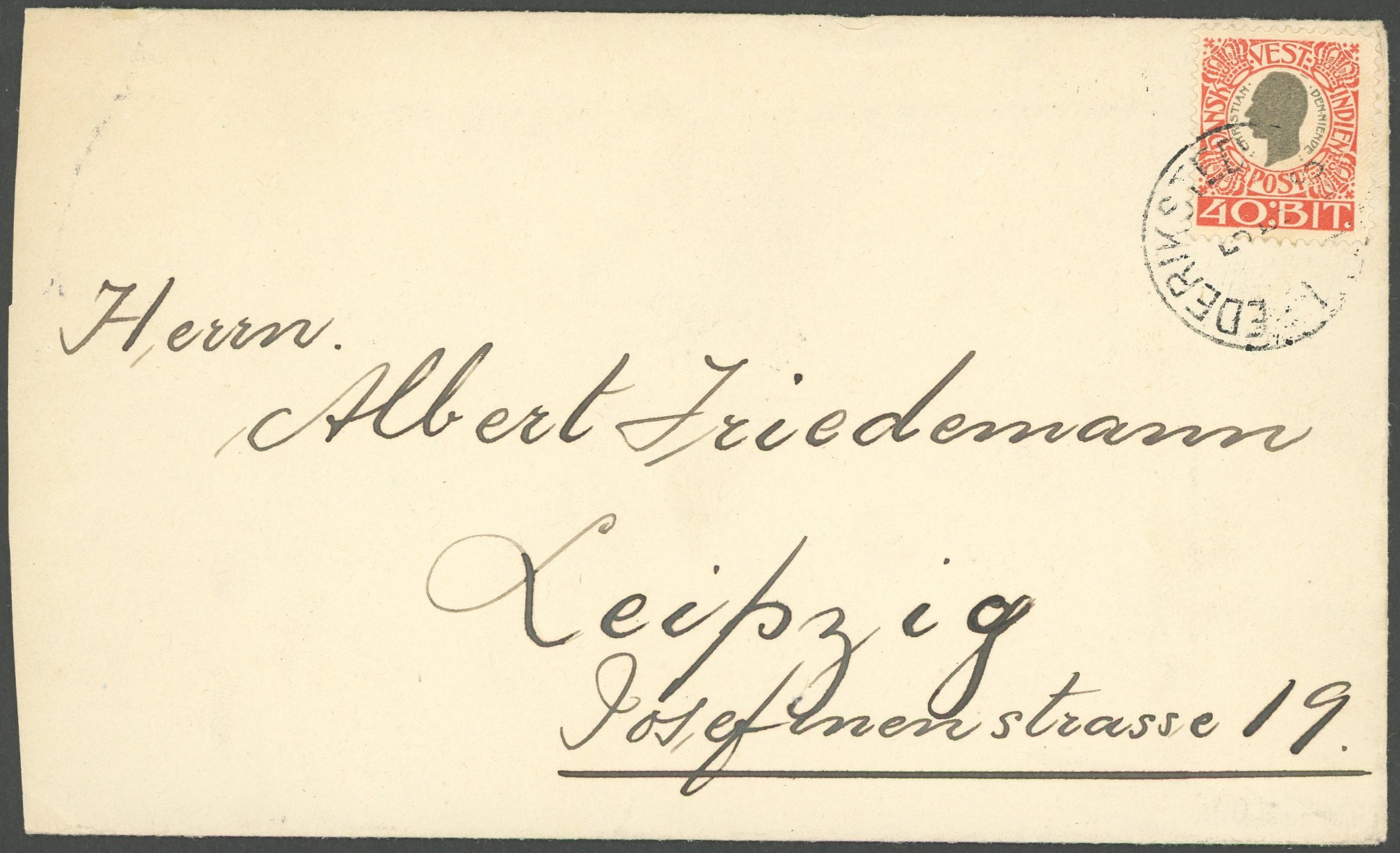 1906, 40 Bit. auf Brief von "FREDERIKSTED" nach Leipzig, Pracht