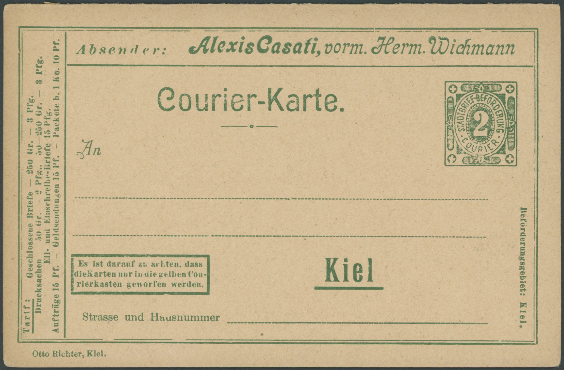courier: 1898, private postcard 2 / 0 Pf. orange A. Casati, unused, superb
