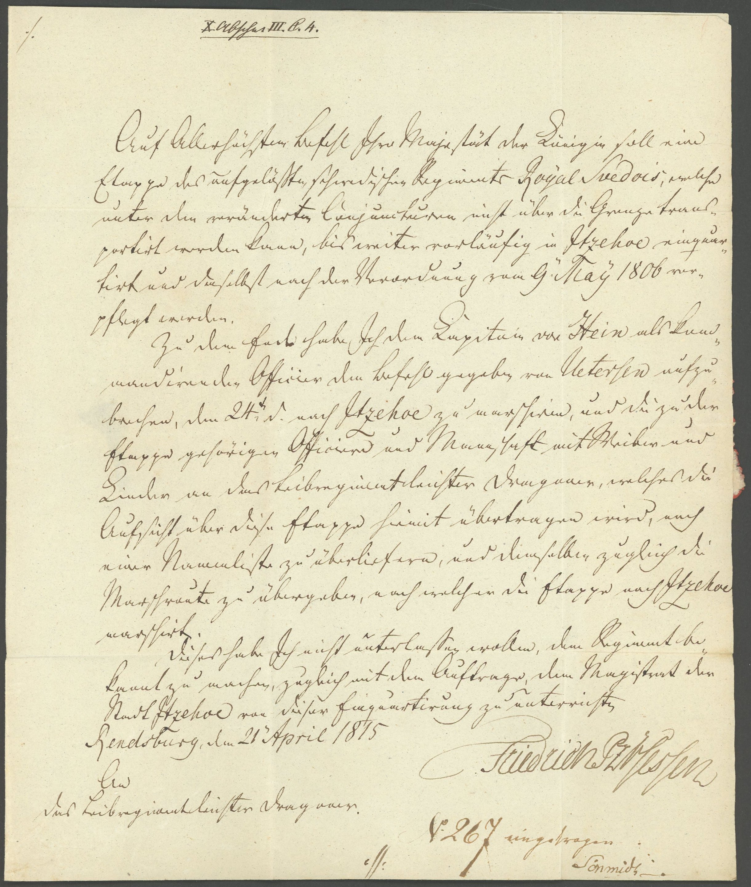 1815, K.D.S. aus Rendsburg an einen Dragoner nach Itzehoe, rĂĽckseitiges Lacksiegel, Pracht
