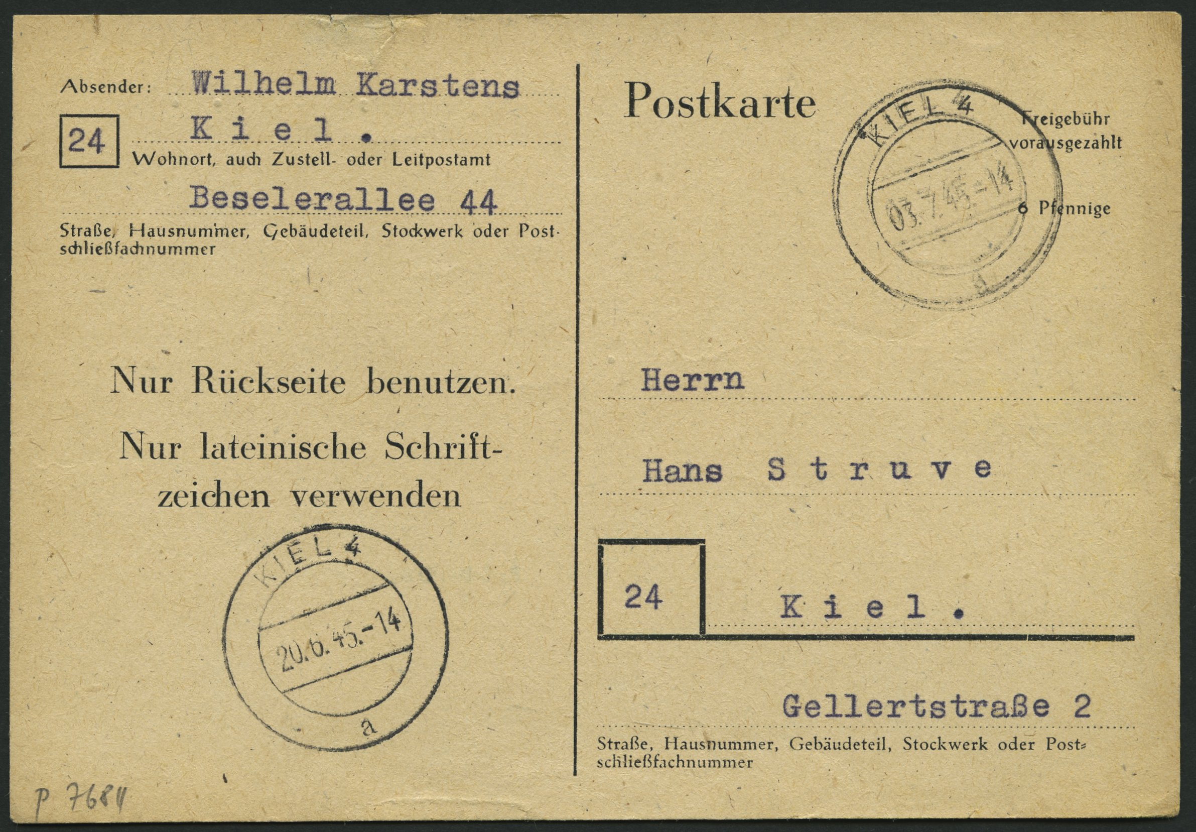 1945, 6 Pfe. black on pale chamois, type II, cancel KIEL, very fine, Michel 100.-